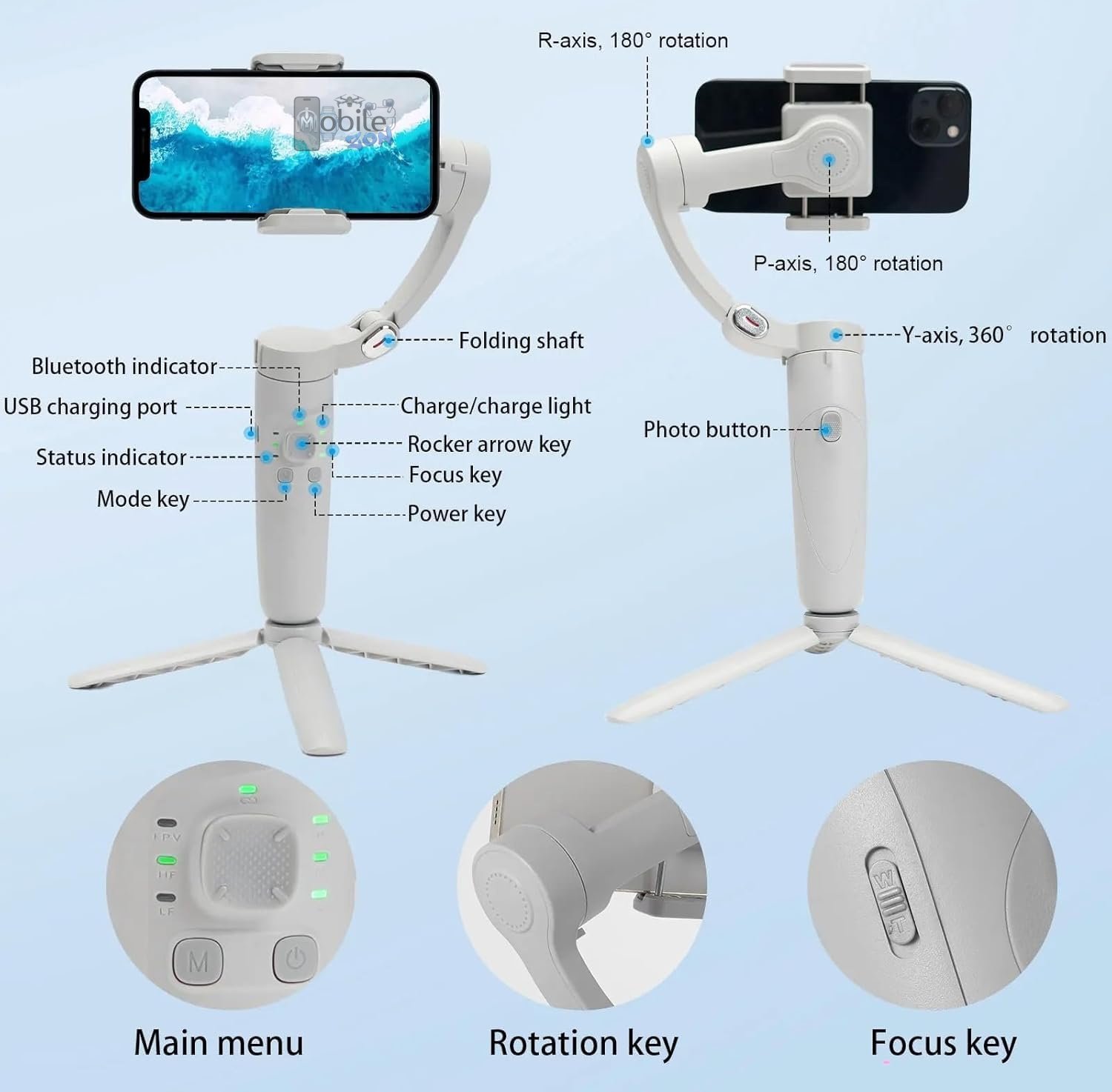 - Q08 Handheld Gimbal Stabilizer Selfie Stick Tripod for Phones